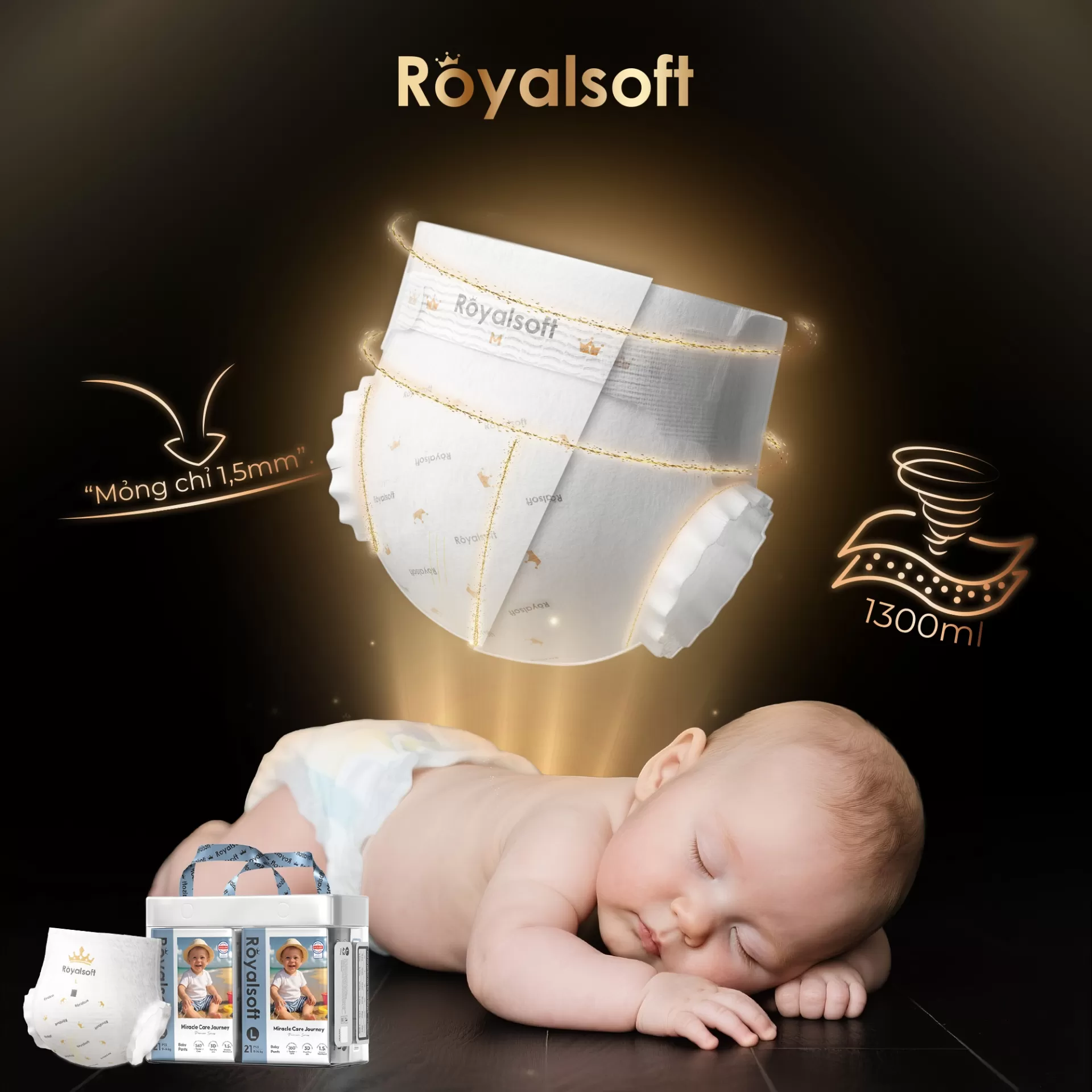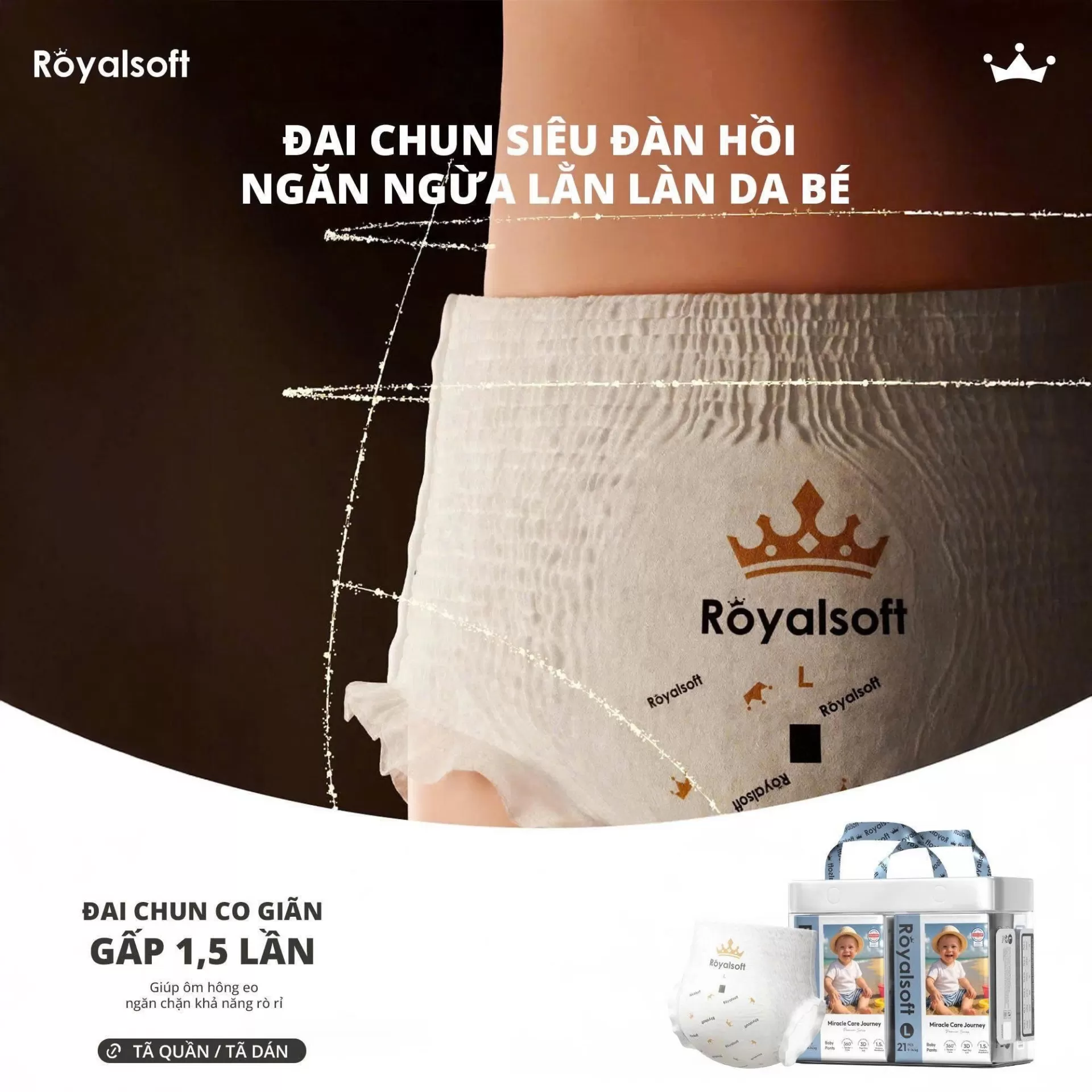 Royal Soft không chỉ là một sản phẩm tã bỉm, mà còn là cam kết về dịu êm – an toàn – thấm hút vượt trội, giúp bé ngủ ngon hơn và mẹ an nhàn hơn mỗi ngày.