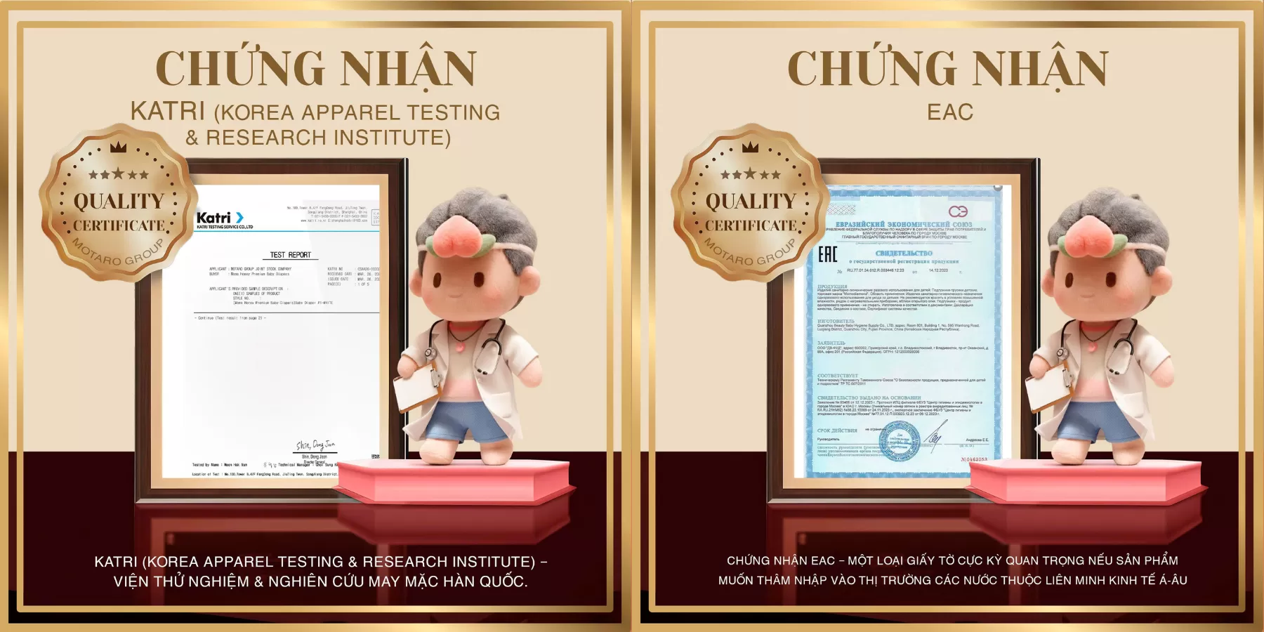 Mỗi chứng nhận đạt được là một bước tiến trong hành trình hoàn thiện chất lượng sản phẩm của Motaro. Đó cũng là lời khẳng định cho nỗ lực không ngừng nhằm mang đến những giải pháp chăm sóc an toàn, phù hợp và đáng tin cậy cho mẹ và bé.